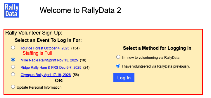 Returning volunteer? Select “I have volunteered via RallyData previously” and sign in.